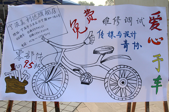 十二月五日,是国际青年志愿者日。传媒学院青协携手宁波市美利达自行车旗舰店共同举办了“爱心予车”志愿活动,与传统的修车活动不同的地方在于,该活动不仅是为全校师生免费维修以及调试自行车,更在于它索要所要宣传绿色出行,安全环保的生态理念。早在前期宣传上,该活动就得到了众多同学以及宁波市民的认可。