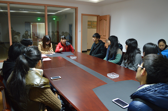 上午8:30,参与此次志愿者活动的志愿者们在学校北门集合,集体出发前往景湖水岸社区。到达社区后社区物业管理工作人员热情地接待了志愿者们,并在会议室召开了一次简短的会议。社区居委会杨主任向大家叙述了她所认为的志愿者精神以及她当年参加志愿者活动的经历和感悟。她希望志愿者们能够坚持进行长期的活动,并且希望“心灵对话一对一”的聊天能够真正的达到慰藉老人心灵,充实老人生活的目的。