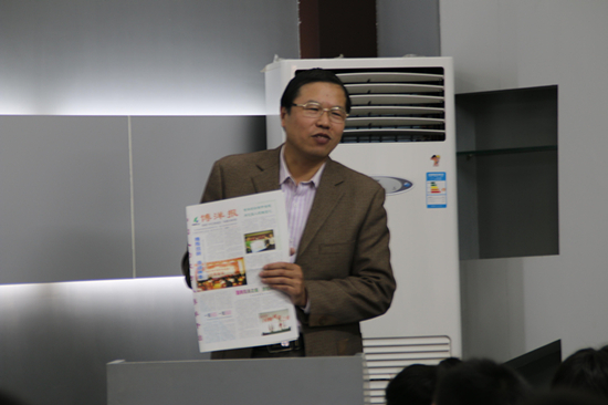 11月15日下午,宁波企业内刊编辑走进浙大宁波理工校园,与传媒学院在校学生开展“面对面”交流活动。活动由传媒学院的聂晶磊老师和宁波市企业内刊交流中心的邵兴挺老师共同主持。活动邀请到了博洋集团《博洋报》主编、宁波塞尔富电子《自己》杂志主编、华茂集团《华茂报》主编、浙江广天日月集团《宁波建设报》主编和恒威集团《恒威报》主编等。到会主编与传媒学院新闻学与广告学的相关同学“面对面”进行交流,分享了办报办刊的相关经验,通讯、消息的结构、写法以及报刊的排版设计等内容。