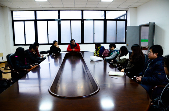 2012年12月21日,传媒与设计学院在SC101内举办了考研交流会,学院副院长刘建民、博士后魏旭和辅导员任凯老师出席了本次交流会。虽然天气寒冷又一直下着雨,但不少参加考研的同学们仍坚持到场。