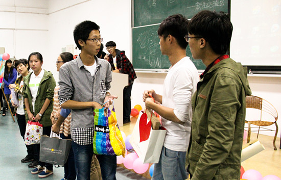 活动下半场“四意轻狂”则充满了欢乐和笑声。主办方邀请到了新闻092班的董宏程学长与新生们“老生常谈”,他分享了自己在《金华晚报》和《金华日报》的实习经验,讲述了自己的一次暗访经历以及大学期间的学习和情感生活。随后新生与老生们互动的游戏环节把现场氛围推向了高潮。最后在各个新生班级代表互赠礼物后大会接近了尾声。