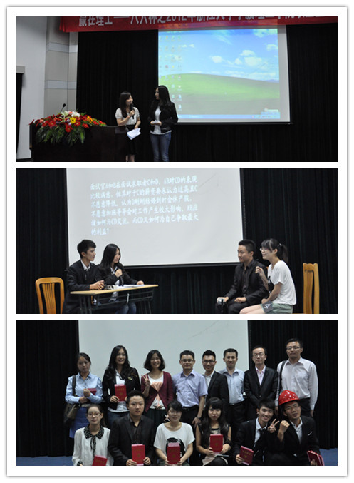 第二轮的情景模拟结束后,最激动人心的颁奖开始了。首先颁布的是职业生涯规划之星,获奖者是一号傅冰清、三号俞景潇、四号方芸芸、五号卢林琪以及七号许珊妮。获得本场最具人气奖的是八号陈学清,他同时还获得了本次职业生涯规划大赛的季军。获得本次大赛亚军的是六号丁徐雁,冠军则是二号余浩凯。