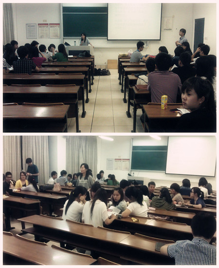 交流会以小组互动的形式进行,讨论氛围极为热烈。经过半个小时的激烈讨论后,小组代表上台发言,就“对新学院融合过程中需要改善的建议以及班委对促进新学院融合应有的作为”和“当班委最大的收获和困扰”这两大问题提出观点。各小组代表风格迥异的发言将交流会推向高潮,最终李晓老师和赵红老师共同评审并宣布了本次交流会的最佳小组,现场颁发了奖品,其他小组也都拿到了小礼品。
