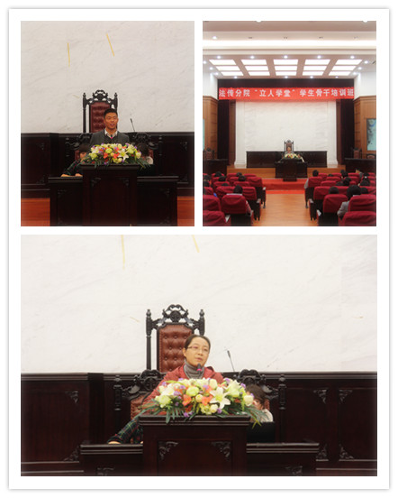 十一月十三日晚,法传分院“立人学堂”系列培训活动开幕式在模拟法庭顺利举行。分院党总支副书记朱晓红,分院辅导员任凯、李晓老师,分院团学社主席团,各部部长、干事,以及新生班各班班委参加了此次活动。