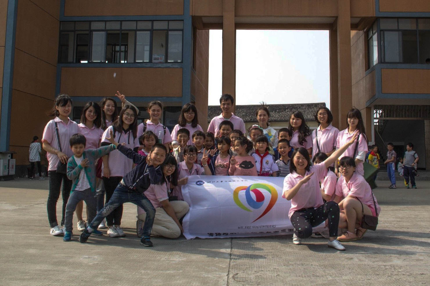 志愿者们来自浙江大学宁波理工学院传媒学院青协,他们身着青春粉色的会服,来到姜山镇丽水小学。此次志愿者活动的主题是"牵手小学,共筑希望",大学生带给小学生课本中没有的知识,开拓视野,让他们拥有更多的生活体验。