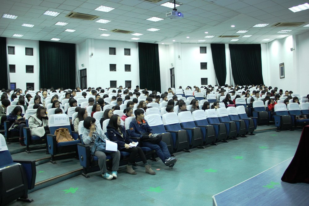 滕崇老师以真实的案例迅速抓住了同学们的注意力,引出第一个话题“学会学习和生活”,提出同学们在经历了半个学期后可能产生的心理问题,讲述了学长与学姐在大学学习生活中遇到的问题,并强调他们积极与老师沟通去解决问题的良好心态,这个话题使同学们意识到大学期间需要有明确的目标、充足的准备、良好的学习方法、适度参加社会实践等。讲座期间“一名学长在大学四年读完400多本书”的案例让全场学生惊叹,滕老师向大家传递了大学期间需要多读书来增强个人知识底蕴的信息。