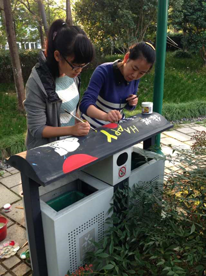 近日,传媒与设计学院青协宣传部带领志愿者在随园开展“美化垃圾桶”活动,巧妙运用垃圾桶与绘画两个元素,为随处可见的垃圾桶“美容”。手绘过的五个垃圾桶分立人行道侧边“值守”,成为随园一道亮丽的风景线。
