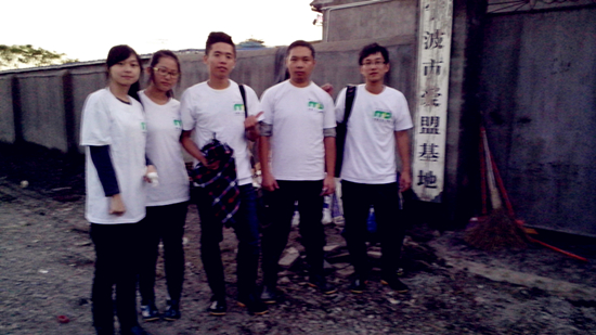10月13日,传媒学院青年志愿者前往宁波市爱盟基地帮助基地进行灾后保洁与重建工作。