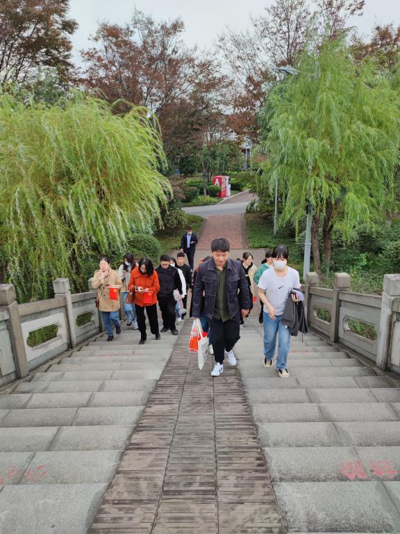 中午12:30师生党员手拿党旗、国旗从学校西门出发,途径院士公园前往影院。采用毅行的方式既是对疫情防控的重视,也是对革命先辈艰苦创业的体悟学习。