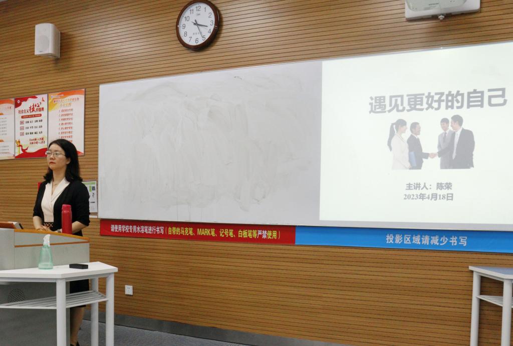 培训上,陈荣老师围绕着“如何给人留下好的第一印象、仪容仪表、仪态、餐饮礼仪”等方面进行了讲解,深入浅出地讲授了礼仪的相关知识。陈荣老师说:“无论是之后的工作面试还是一些演讲和答辩,礼仪都发挥着很重要的作用。”她通过互动环节和举出一个个鲜活的例子,让学员深刻地学习到了礼仪知识。在仪容仪表方面,陈荣老师从发型、面容、微笑、服饰等几个部分详细地讲解了礼仪的基本要求。发型的要求,正确的走路姿势,商务正装怎么穿才合适,体态美的要求,男女生之间礼仪的区别……不少同学感叹道:“原来礼仪也有那么多的讲究。”