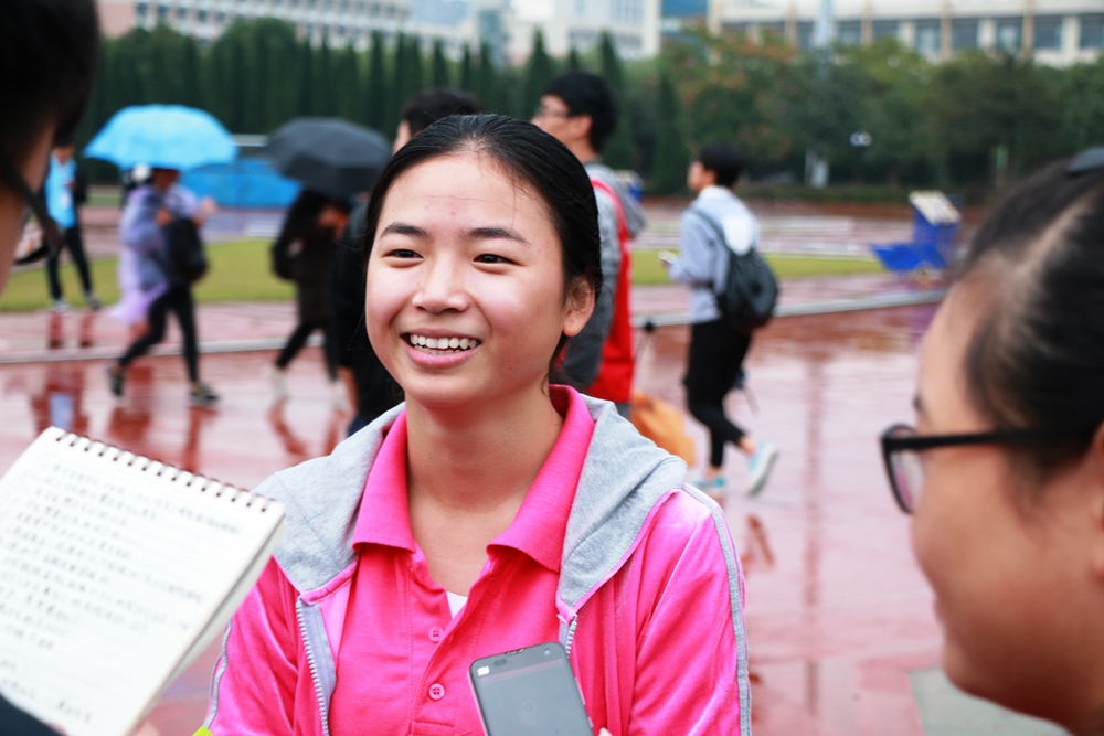 比赛当天,下雨的天气并不适合跑步类的比赛,但陈梦蕾选手依旧显示出良好的竞技状态,在比赛中克服了恶劣天气对自身的影响。虽然雨水淋湿了传媒与设计学院同学的衣服,但同学们依旧表现出极大观看比赛的热情。在陈梦蕾比赛过程中,传媒与设计学院所在看台同学在体育部部长及干事的带领下,一直为陈梦蕾选手呐喊助威,更有专门击鼓的人增加助威的气势。这些显示出传媒与设计学院大一新生参与新生运动会的热情和整个学院强大的凝聚力。