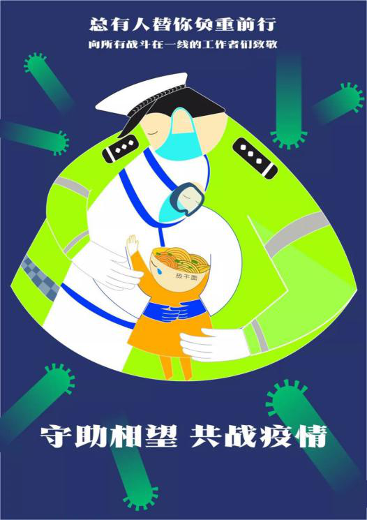 3. 坚守助力,携手战“疫”。面对这场没有硝烟的新冠肺炎战“疫”,学生设计党支部全体党员在疫情面前不忘初心,教师党员与学生党员携手并进,在日常防疫工作、疫情相关活动等多方面积极参与,履行职责。一如学生党员结对开展毕业生就业工作,共同面对严峻形势下的就业压力;又如结合专业特长,设计主题海报,将感激之情融于图中,向一线防疫工作者致敬。