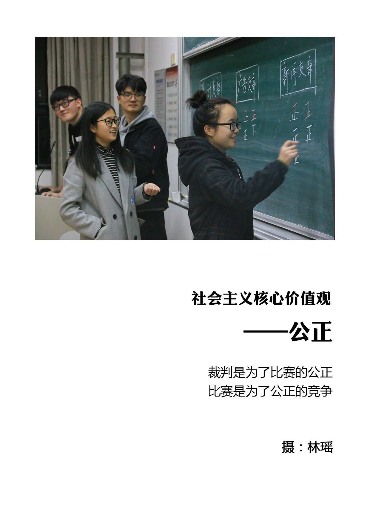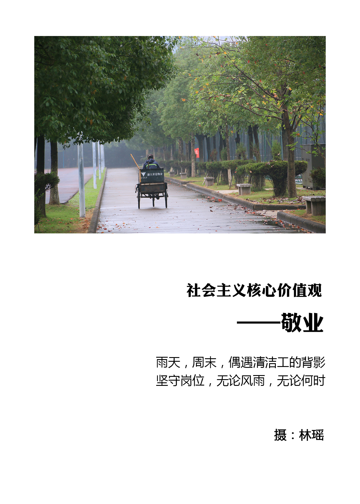 观,传媒与设计学院学生设计支部推出了图说社会主义核心价值观系列作品,活动受到了各位学生党员和入党积极分子的积极响应。同学们将自己的独特视角、专业特长、真情实感融入到社会主义核心价值观作品的创作中。其中林瑶同学的“摄影说”作品受到了大家的一致好评,她用心观察校园生活,利用自己的摄影爱好与特长制作了一组社会主义核心价值观作品,感染了广大师生,让大家真切体会到社会主义核心价值观就在身边。