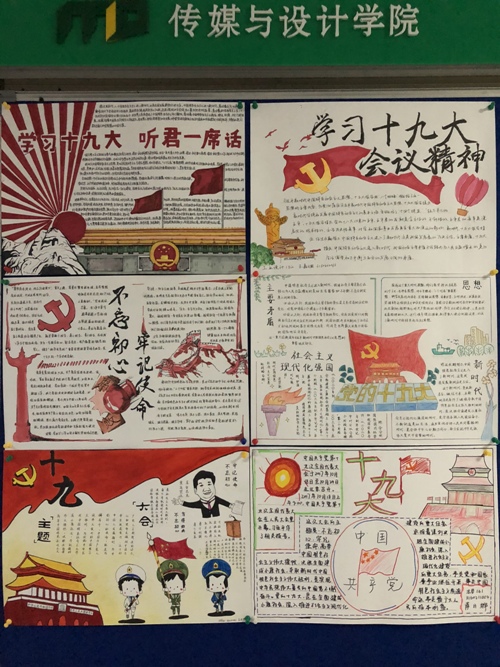 充分发挥自己的专业特长,结合自己关注的话题,比如文化自信、法制建设、教育民生、创新创业等制作了手抄报,表达了对新时代的饱满信心,也展示了青年一代为实现中国梦而努力的强大决心。