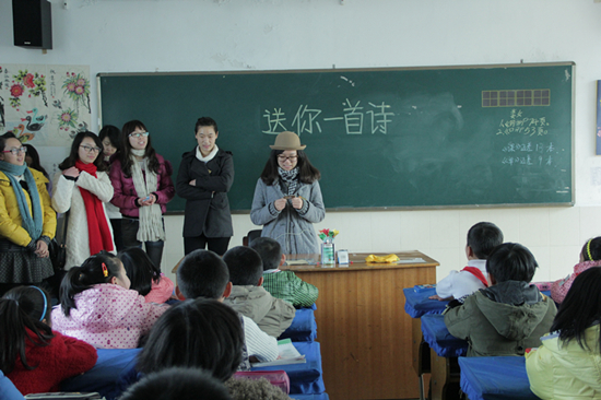 2013年12月31日下午,传媒与设计学院学生广告支部主办的“送你一首诗”活动在钟公庙中心小学三年级五班正式进行。本次活动由广告支部与营销支部共同参与,为小学生们带来了别开生面一堂“送诗”课。