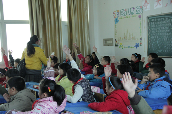 “送你一首诗”活动是广告支部丰富多彩的传统项目之一。三年五班的教室里,广告112卢旷仪同学诙谐有趣的开场白成功的引起了五班的同学们的积极响应,学生党员们一个接一个的上台,带领同学们朗诵诗歌、唱歌、提问,还分发了精心自制的诗歌卡片与购买来的糖果。小学生们的脸上都是抑制不住的好奇与兴奋,在分发卡片时更是都举高了小手讨要。最后,在分给每一位同学卡片与糖果后,党员学生还与小学生们进行了天马行空的谈话,引起了孩子们一阵阵的笑声。两点四十下课铃声响起,在与孩子们做了明年再来的约定后,党员们最终不舍的离开了钟公庙中心小学。