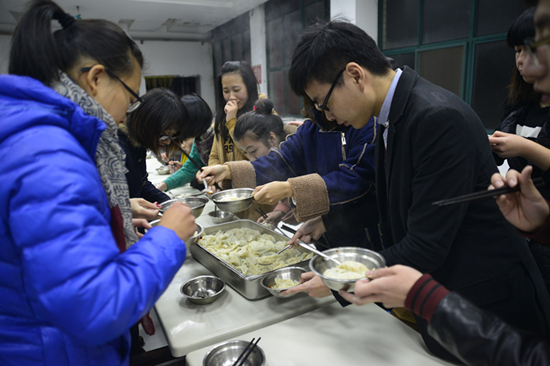 随后各支部开始了冬至交流活动,包饺子大赛、分享成果、我是大胃王、饺子小组传递共四个环节。参赛人员被分成了三组,评审团由任凯、李晓、赵红老师组成,根据三组比赛情况进行评选,选出三个荣誉称号,并为优秀团队颁奖。