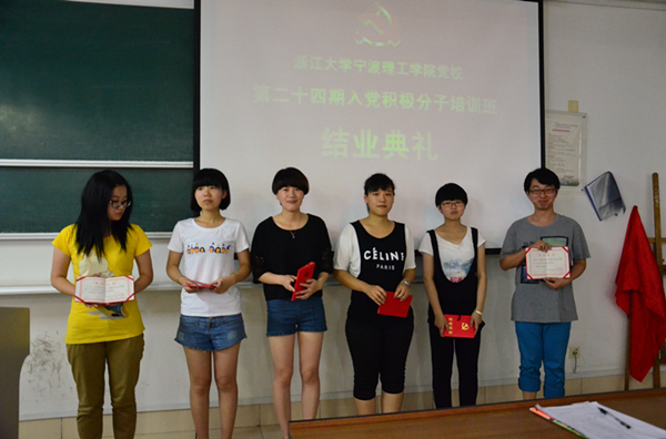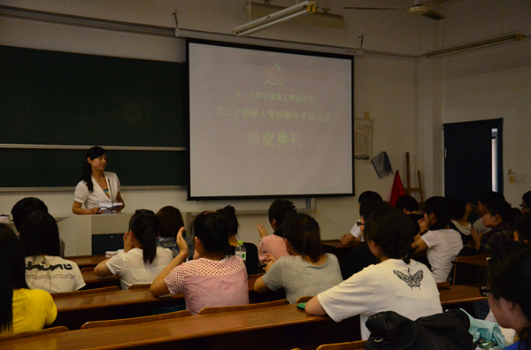 自4月24日开班以来,经过近两个月的培训指导,47名入党积极分子培训班学员顺利结业,占本次学习总人数的87%。其中,环艺121陈丽同学等5名学员凭借在培训期间各个方面优异的表现,被评为优秀学员。李晓老师为以上五位优秀学员进行了颁奖。