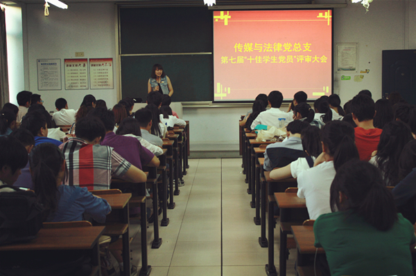 6月3日晚,传媒与法律党总支第七届“十佳学生党员”评审大会在SB209顺利举行。党总支副书记朱小红、学生广告支部书记任凯、学生新闻支部书记李晓、学生设计支部赵红等老师和全体在校学生党员和入党积极分子参加和观看了此次评审。