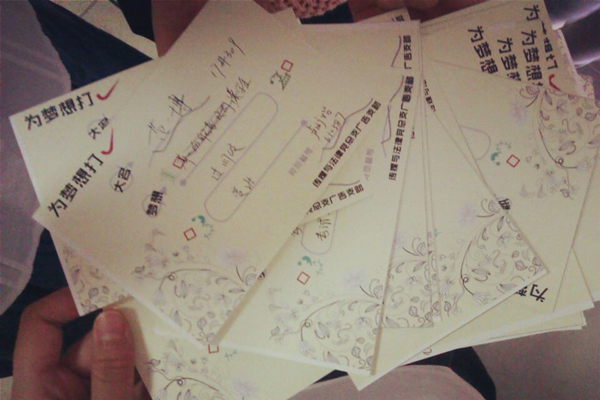 原来,这是他担任新生“宿舍导师”联系的广告122班夏兰叶同学的报喜电话。在本学期开学初,广告支部开展了“宿舍导师帮你为梦想打勾”的活动,每位大一学生都收到了一张卡片,担任“宿舍导师”的党员们让他们在卡片上面写下各自的阶段目标,并积极鼓励督促他们去实现目标。