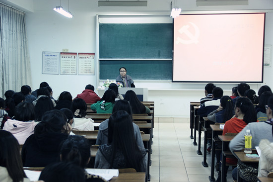 典礼开始,李晓老师阐述了本次入党积极分子培训班的培训计划和要求,叙述了入党积极分子的具体考核要求以及参加培训班的目的和责任。他主张学习过程要严格认真,加深对党的了解,提高自身的修养,向党组织靠拢。随后,12级新生代表张斯惠与在座的同学分享了自己参加新生党校培训班的心得,共勉了学习经验,为在场的新生入党积极分子做榜样。 最后,党总支副书记朱小红老师表达了自己对本期入党积极分子的美好希冀和祝愿。她首先肯定了12届新生在迎新晚会上的成功表演,随后她要求同学们积极践行党的优良作风,通过在党校的学习,加深对党的认识和了解,以实际行动去践行“共产党员”的义务和要求。