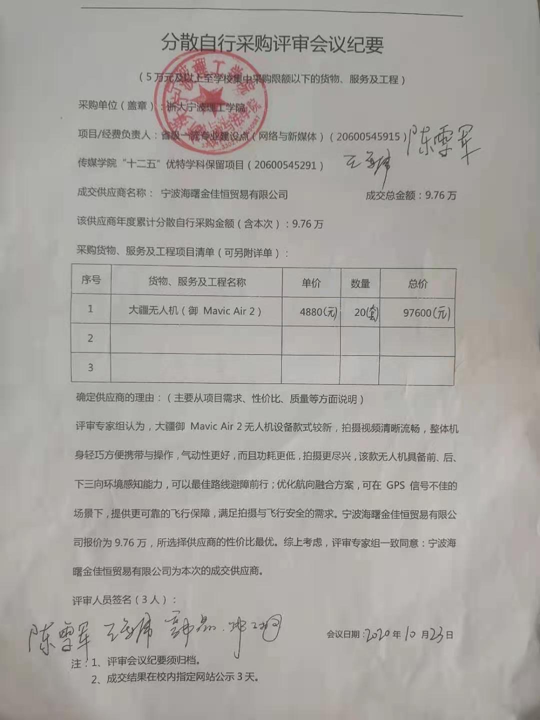 9778818威尼斯大疆无人机分散自行采购项目成交结果的公示